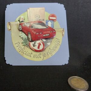 3D kaart sportsauto en verkeersborden met tekst proficiat met je rijbewijs