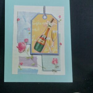 3D kaart fles champagne en glazen en rozen op de achtergrond
