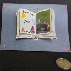 Boek kaart met raceauto’s en motoren en tekst gefeliciteerd