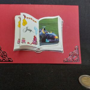 Boek kaart met raceauto’s en motoren en tekst gefeliciteerd